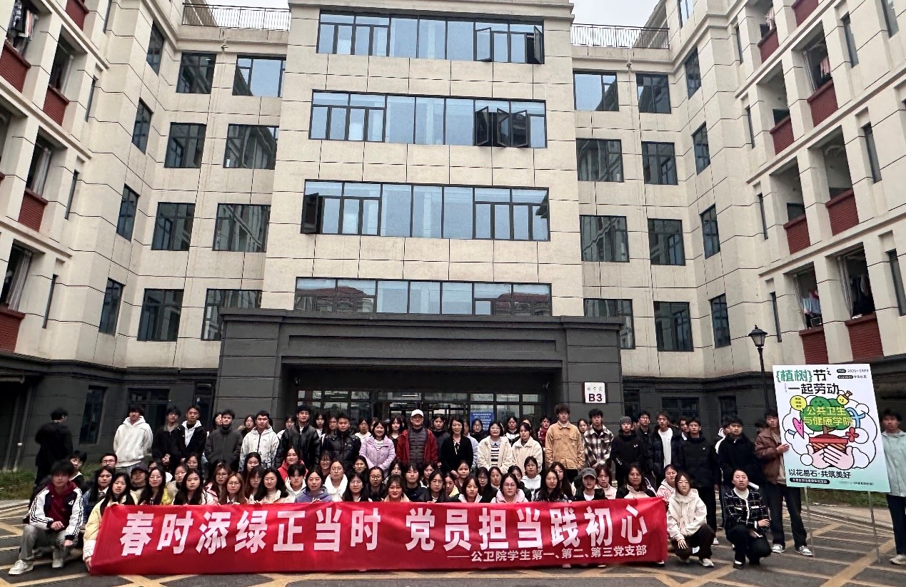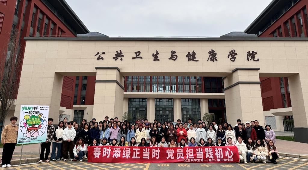 3月12日植树节当天,公共卫生与健康学院学院学生第一、第二、第三党支部在组团内开展了“春时添绿正当时 党员担当践初心”主题党日活动。旨在增强党员同志的凝聚力和责任感,为校园环境的美化贡献一份力量。此次活动也是我校“以花易石,共筑美好”劳动教育活动之一。