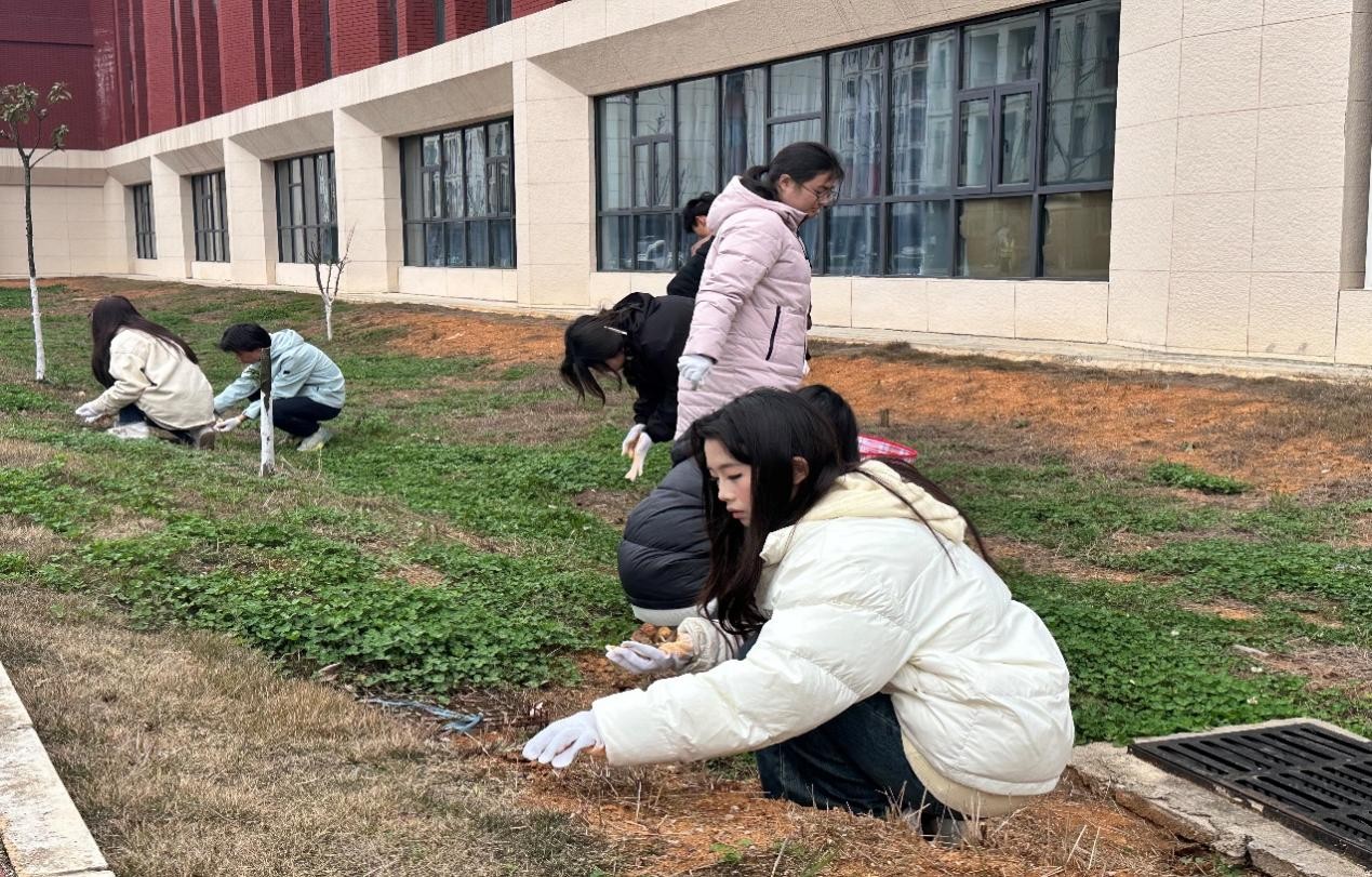 在活动中,支部党员同志与学校学生处、后勤管理处老师配合,提前规划劳动区域,准备劳动工具(手套、铲子、编织袋等),组织党员同志进行分组,明确责任分工。大家分成多个小组,互相协作完成任务。从捡拾石子到松土、撒种、浇水,每一个环节都需要团队成员的紧密配合。通过这次活动,同学们学会了更好地沟通与协作,增强了团队凝聚力。